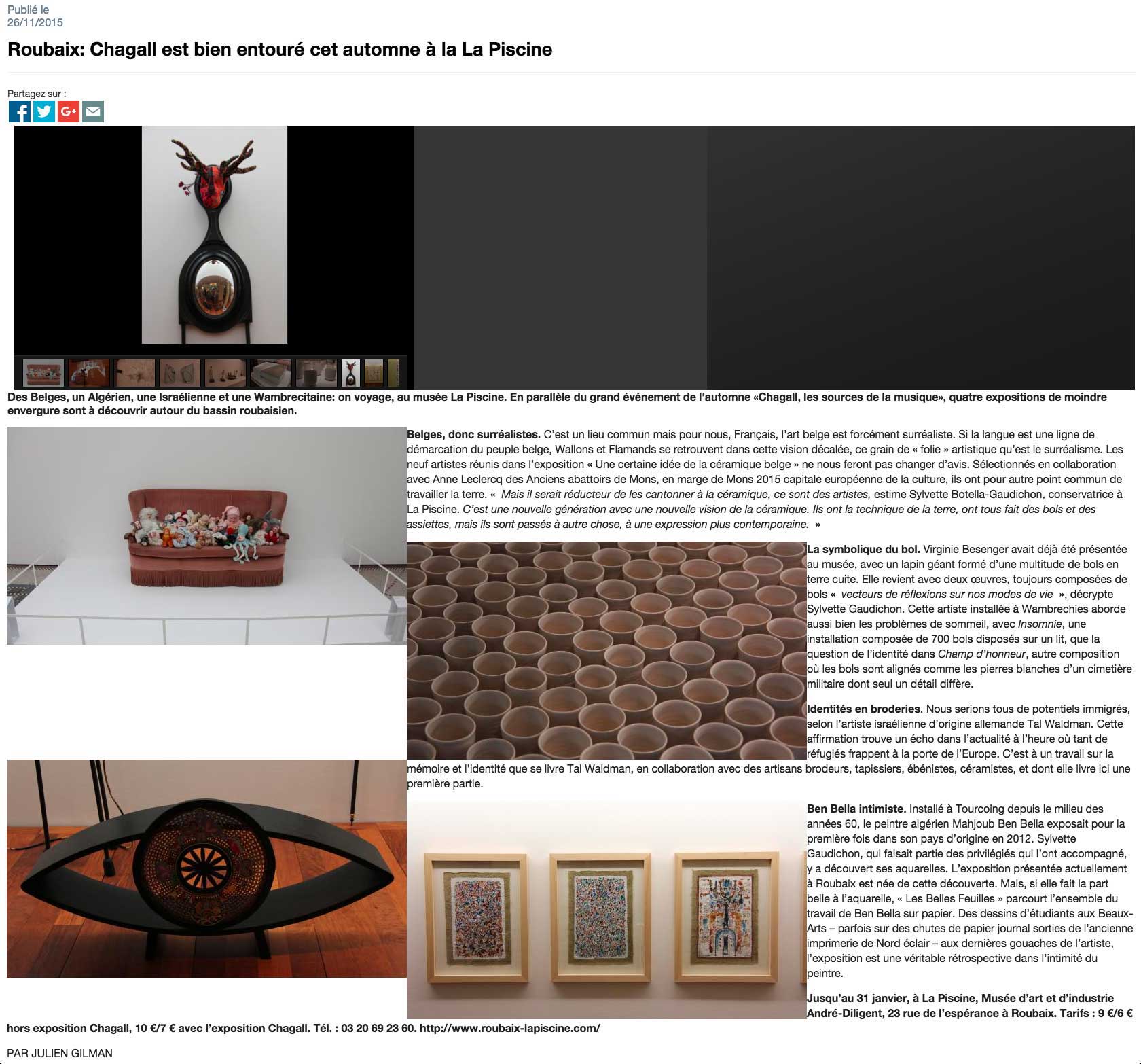 La Voix du Nord (August 2015) – by Julien GilmanChagall is well surrounded this fall at the La Piscine Museum